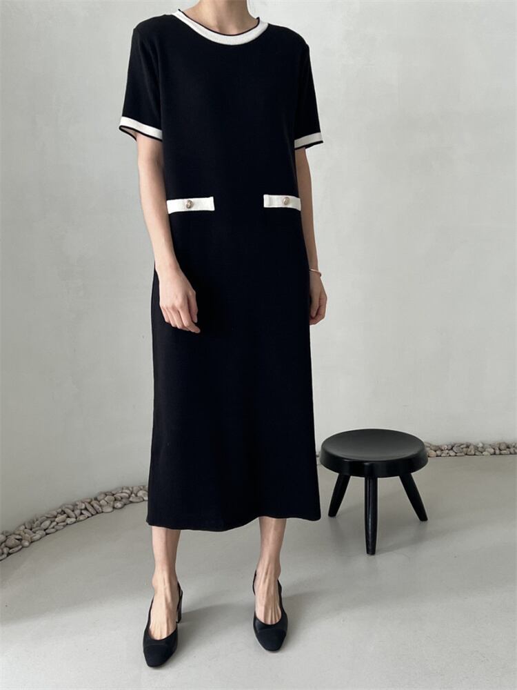 テレビヒロインのように ゆったりする 肌にやさしい ロングスカート ラウンドネック ニットワンピース