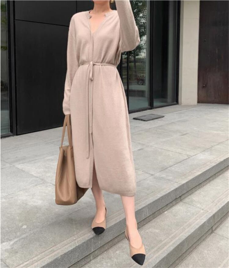 楽しておしゃれ 受け取って腰 ギャザリング ニットワンピース 気質 巾着 怠惰な風 ロングスカート