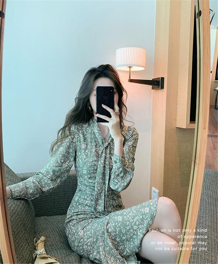 Vネック タイトスカート 花柄 シン フィッシュテールスカート 長袖