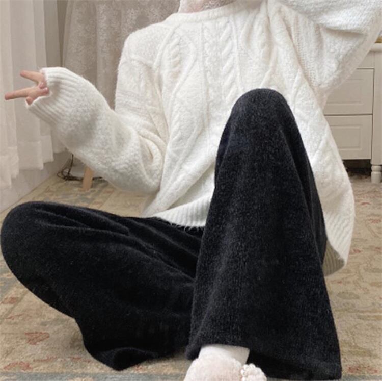 ワイドパンツ 学生 ストレート ロングパンツ ハイウエスト ドレープ フロアモップパンツ