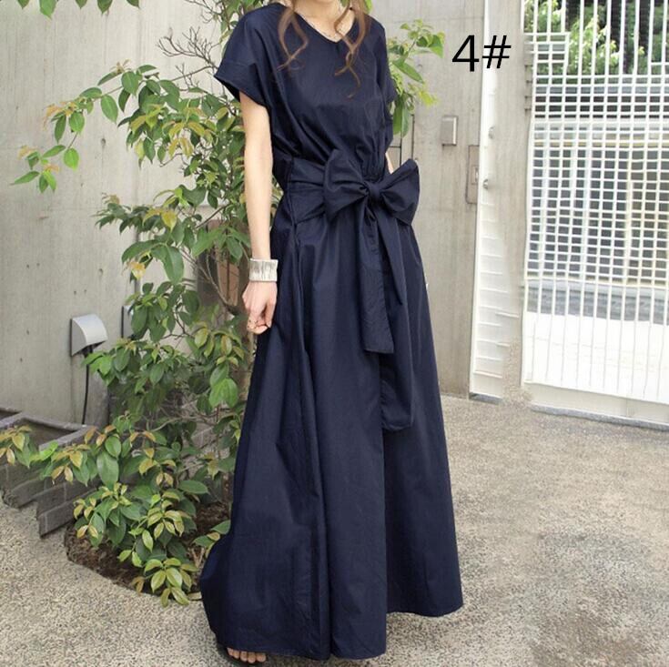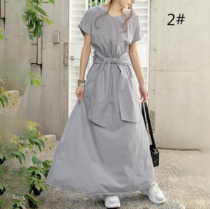 2021新作 ワンピース ロングワンピ マキシワンピ 2WAY着 バックリボン 半袖 体型カバー 春 夏