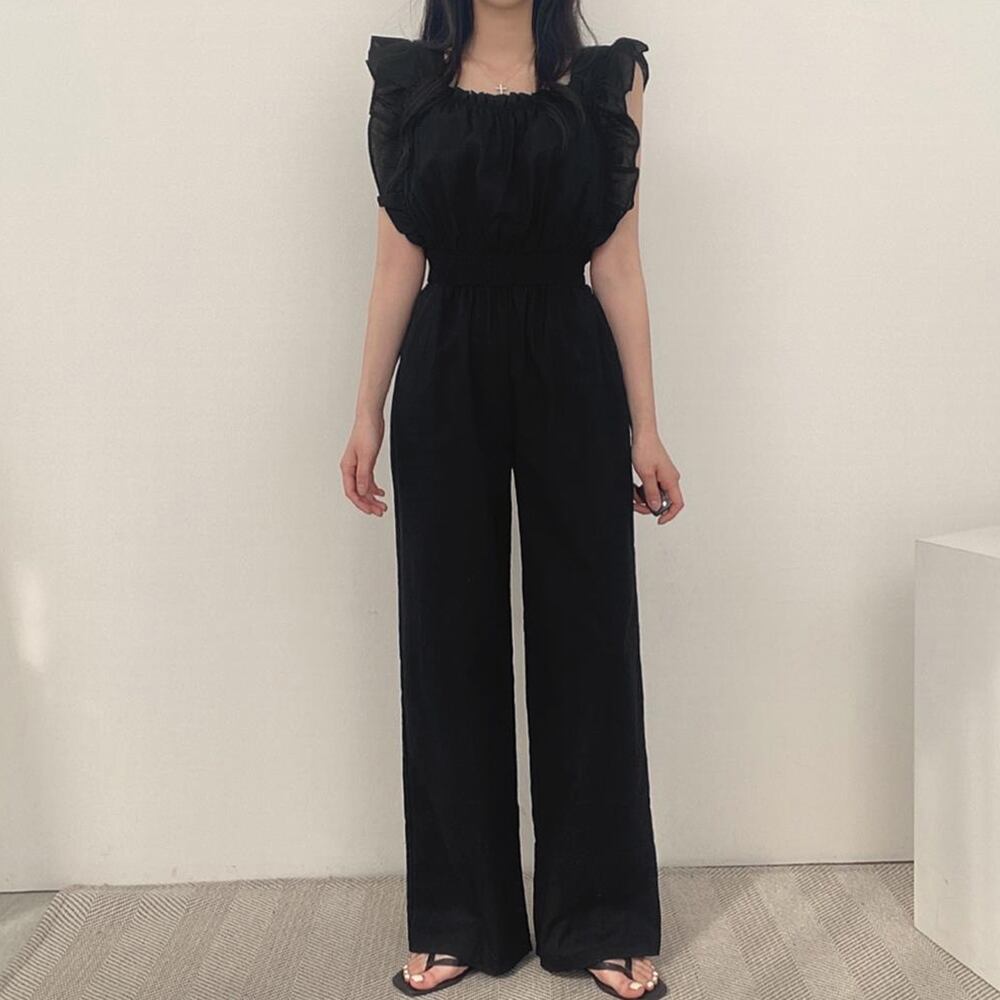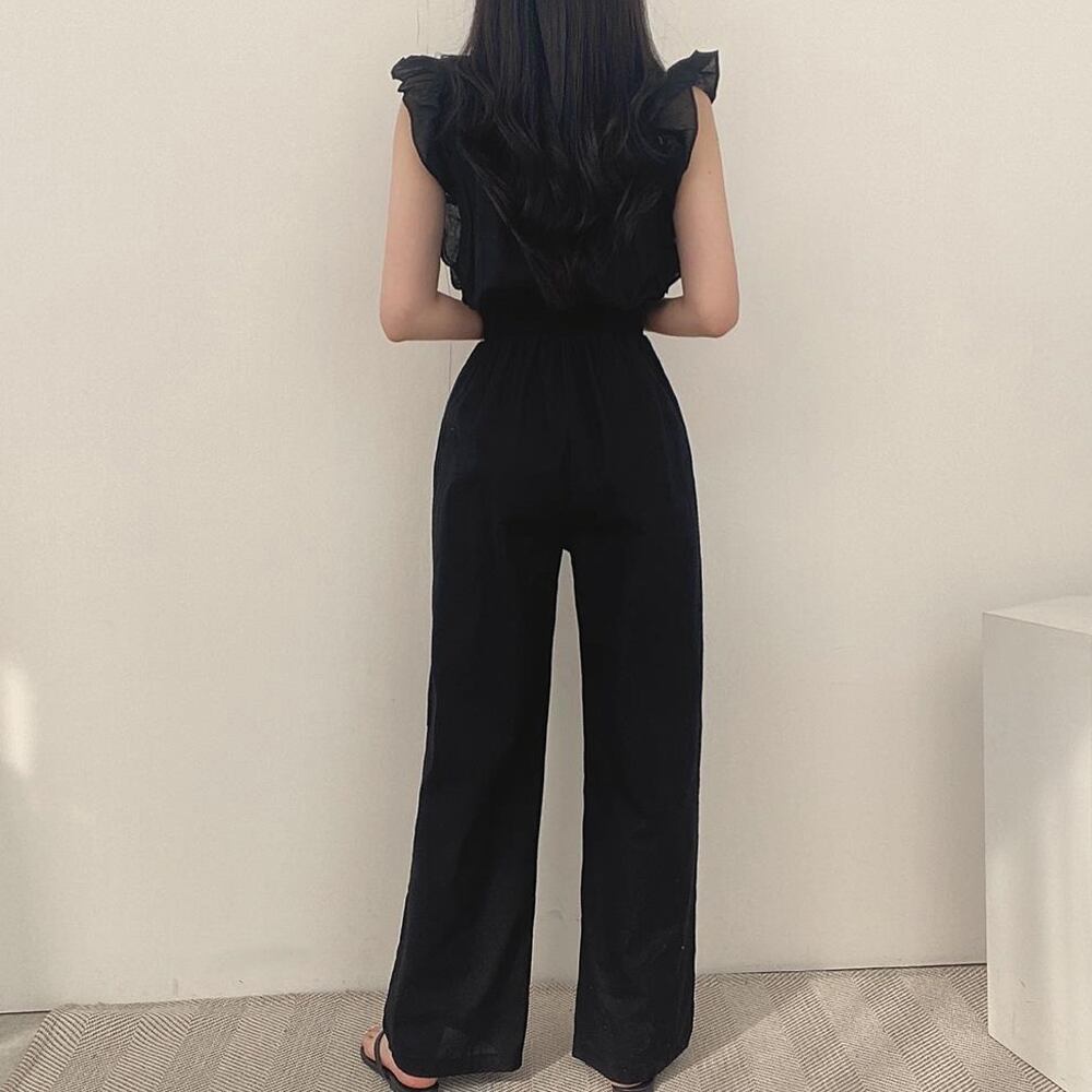 おしゃれ夏服着やせ/オフィスカジュアル/つなぎワイドパンツ