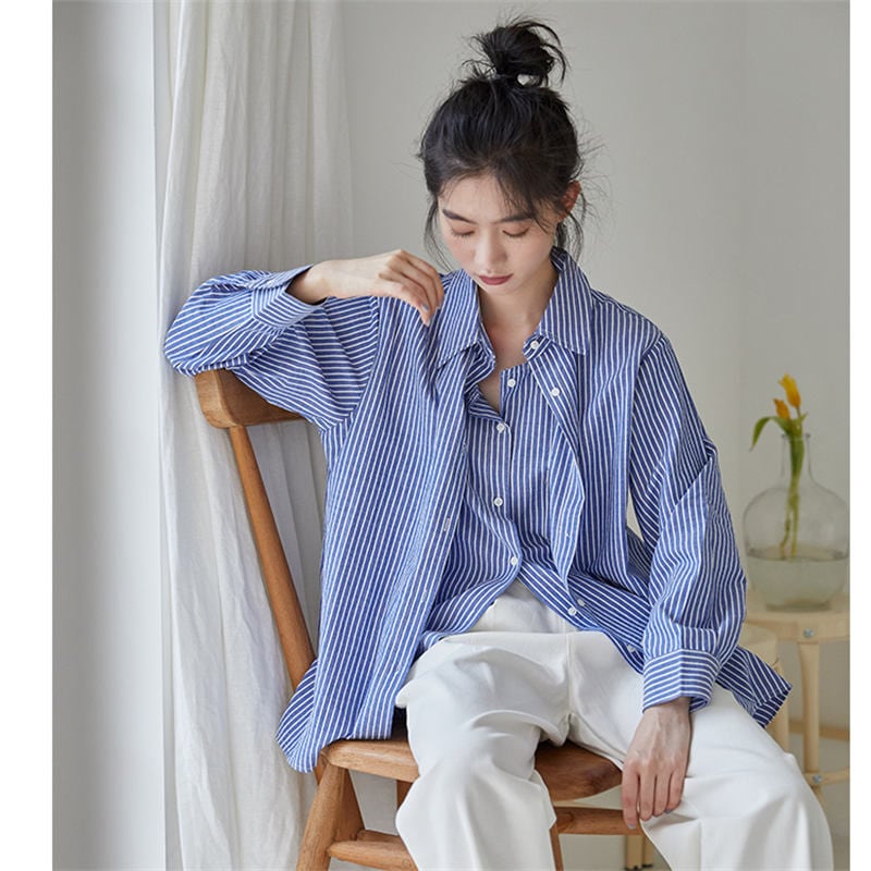 2023年INS秋冬新作 気質 合わせやすい 偽2枚 ストライプ柄 長袖 シャツ/ブラウス