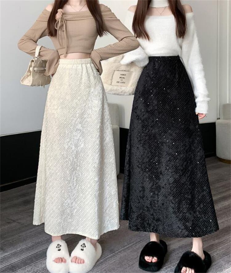通勤する スパンコール スカート 春 伸縮性のあるウエスト ハイウエスト
