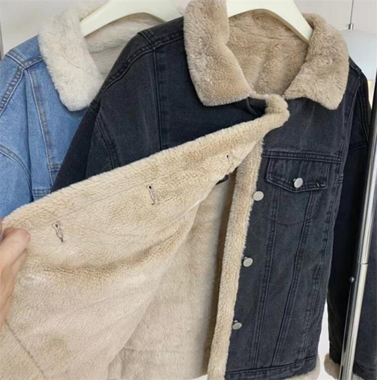 INSスタイル リバーシブル スリム ウサギ毛 ジャケット 新品 毛皮一体 デニムジャケット