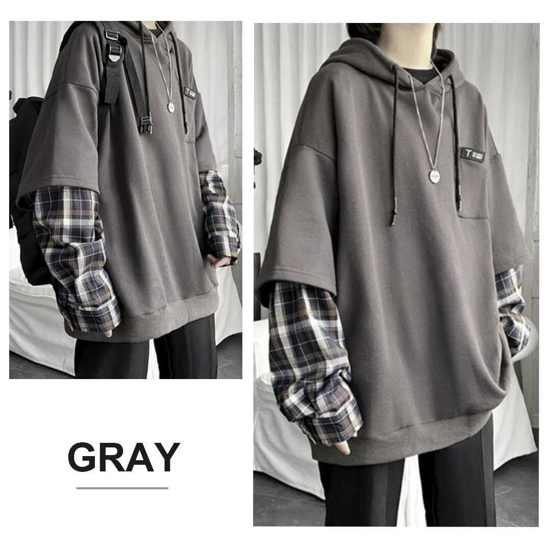 パーカー ツートンブレンドチェック チェック柄 全3色 ビッグシルエット トップス プルオーバー
