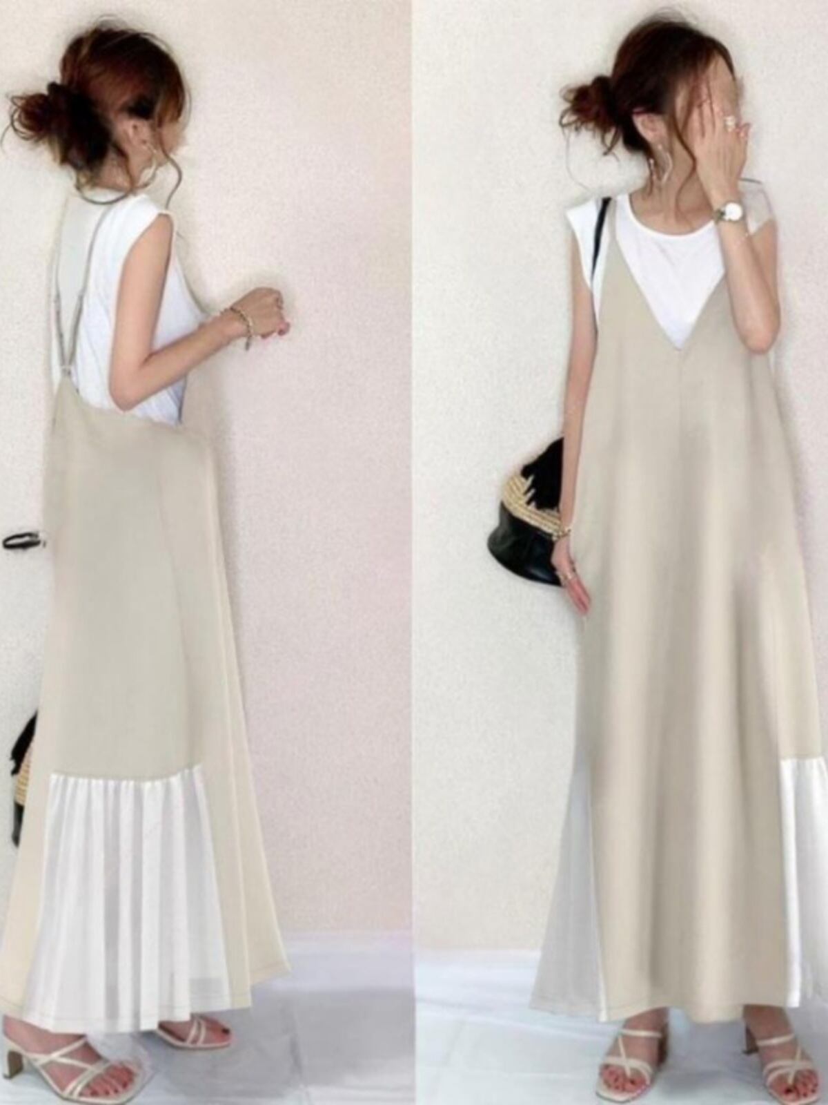 日系ノースリーブワンピース ゆったりtシャツとワンピース2点 レーディスファション商品
